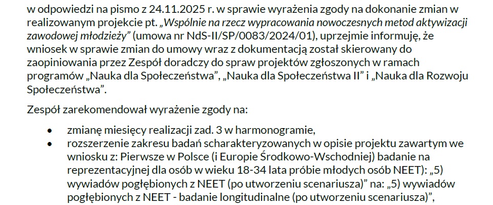 Mamy zgodę MNiSW na badanie podłużne! Na zdjęciu widoczna jest oficjalna zgoda MNiSW na realizację badań podłużnych z uczestnikami projektu w...
